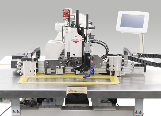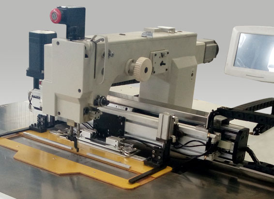 本機(jī)設(shè)計(jì)結(jié)構(gòu)嚴(yán)謹(jǐn)、傳動(dòng)可靠,通過(guò)隨機(jī)編程器能進(jìn)行花樣圖形、針數(shù)、線跡長(zhǎng)度等各種參數(shù)的設(shè)定?;拥妮斎搿?chǔ)存、修改、調(diào)用便捷,并可以通過(guò)USB接口輸入預(yù)先編好程序的各種圖形進(jìn)行縫紉加工。是一款專(zhuān)門(mén)用于縫制皮革、吊裝帶等厚料物品的大規(guī)模電子花樣機(jī)。